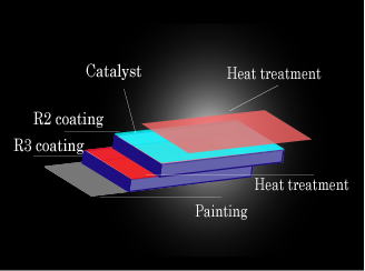 特殊コーティングR2を塗布することにより、汚れの固着を防ぐ触媒型コーティング